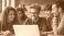 Sport - Four young diverse students laugh while looking at laptop screen in university lecture hall.... #1855000450