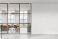 Sport - Modern office interior with glass wall meeting room and large blank white wall for poster or... #1857432642