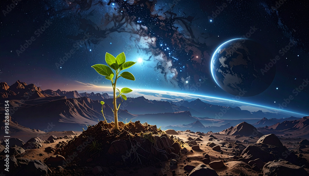 Kosmos - Plant growing in space with earth #1982886154