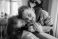 • Small girl and boy in pajamas indoors at home at Christmas, playing.