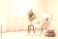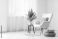 Pejzaże - Interior of light living room with armchair, table and pampas grass in vases #1847194388