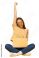 • Happy young woman celebrating success with laptop, raising arms in excitement, sitting on floor
