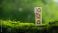 • Recycle symbol on wooden blocks in green nature background. Eco concept for recycling, sustainable living, and environmental conservation.