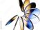 • Abstract black 3d background with neon glass circle disc, radiant blue yellow gradient. Crystal round disks, holographic transparent lens, circular motion effect. Digital tech banner