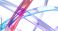 • Iridescent liquid glass ribbons on light blue 3d background. Rainbow crystal glossy curved stripes, rounded transparent lines with purple red gradient. Abstract geometric tape pattern