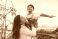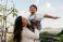 Owoce - Mother lifts happy child outdoors with a city view in the background #1867063825