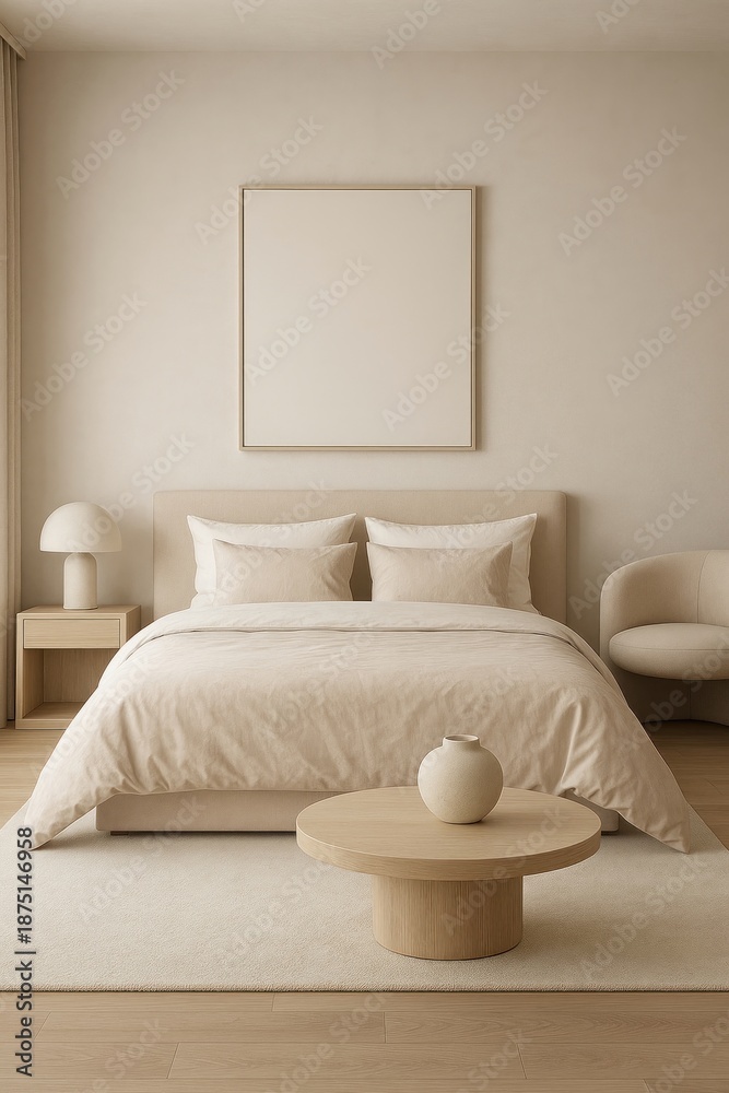 Owoce - Minimalist beige bedroom design elegance. #1875146958