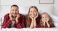 Sport - Happy parents with their little daughter lying under blanket in bedroom #1832319334