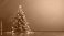 • Blue Christmas background with empty space for text and a Christmas tree decorated with gold baubles and a gold star
