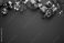 • Merry Christmas and Happy Holidays greeting card, frame, border. New Year. Red Christmas ornaments and gifts, presents on green background top view. Xmas holiday festive theme. Christmas decoration