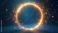 • Golden circle frame glows on dark blue background. Abstract light effect creates a magical atmosphere. Suitable for announcements or branding.
