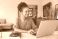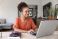 • Happy beautiful young African businesswoman in elegant glasses working on online freelance project from home, typing on laptop at workplace table, smiling, using wireless technology