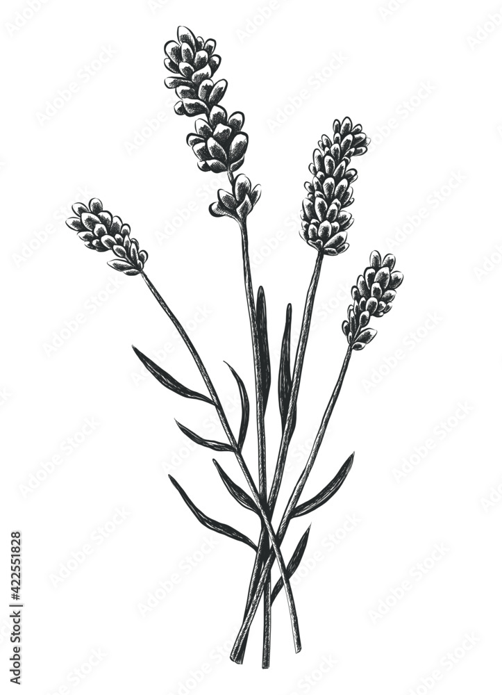 Fototapety Lawenda - Vector hand drawn lavender flowers, isolated on white background. #422551828