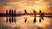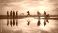Fototapety Plaża - skok woda plaża odbicie ludzie sylwetki plaża #43603633