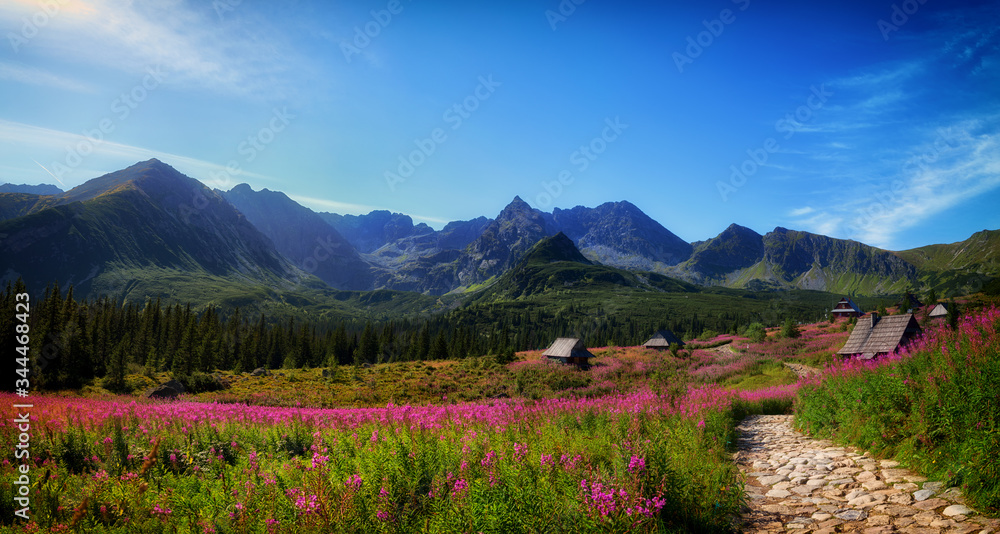 Fototapety Góry - Hala Gąsienicowa w Tatrach w czasie kwitnienia wierzbówki kiprzycy #344468423