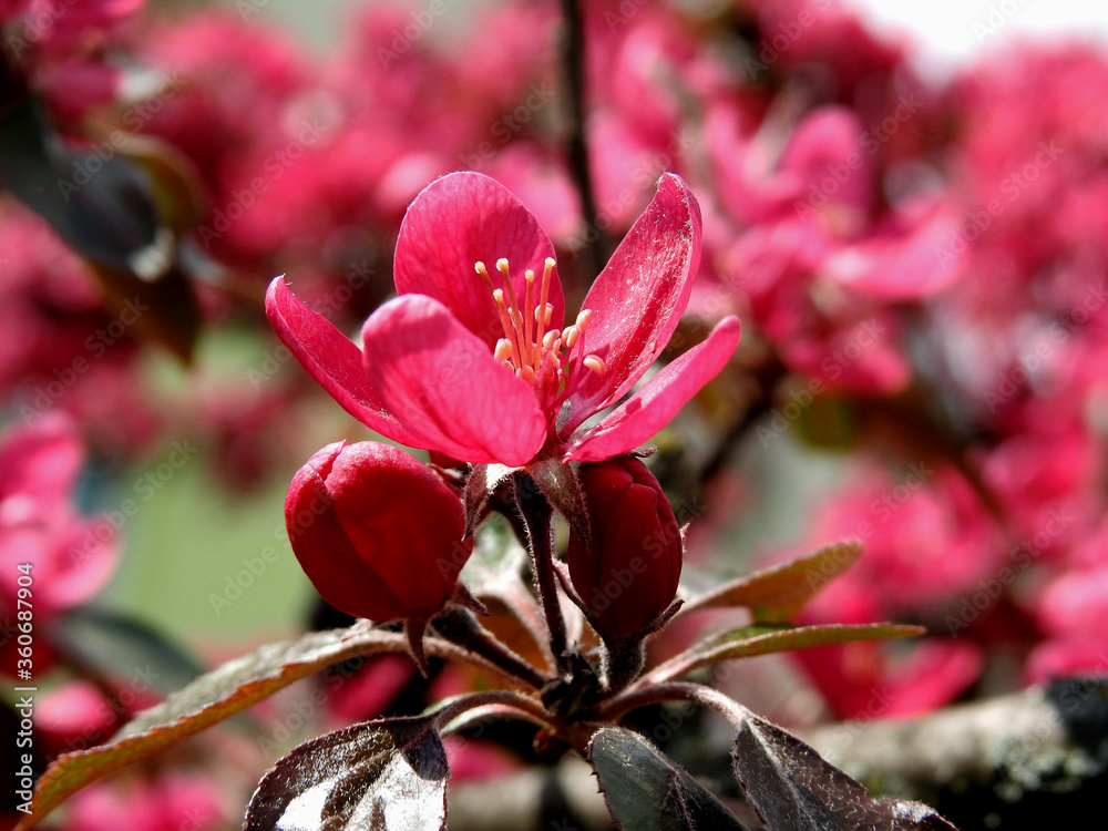 Fototapety Wiosna - wczesna wiosna kolorowe kwiaty drzew owocowych nasadzanych w parkach ogrodach i skwerach w... #360687904