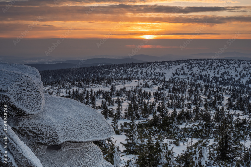 Obrazy Zachód słońca - Karkonosze - Zima, zachód słońca #1268948746