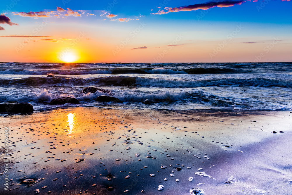 Obrazy Zachód słońca - zachód słońca Poddąbie polska plaża #427734182