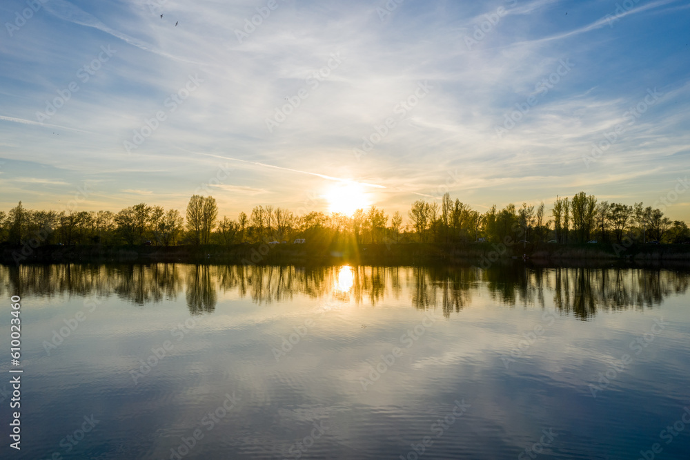 Obrazy Zachód słońca - Zachód słońca nad jeziorem #610023460