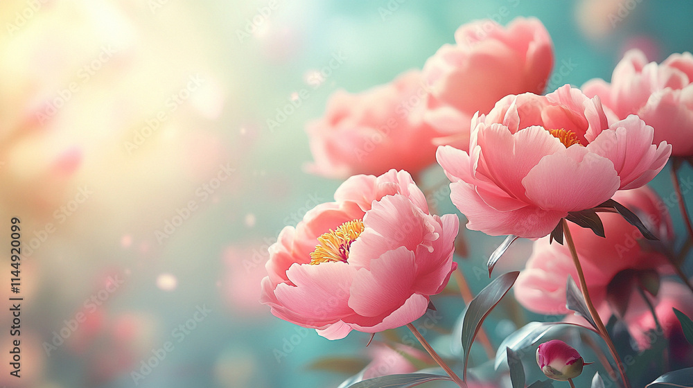 Piękne wiosenne tło, kwiaty piwonii, tapeta generative ai