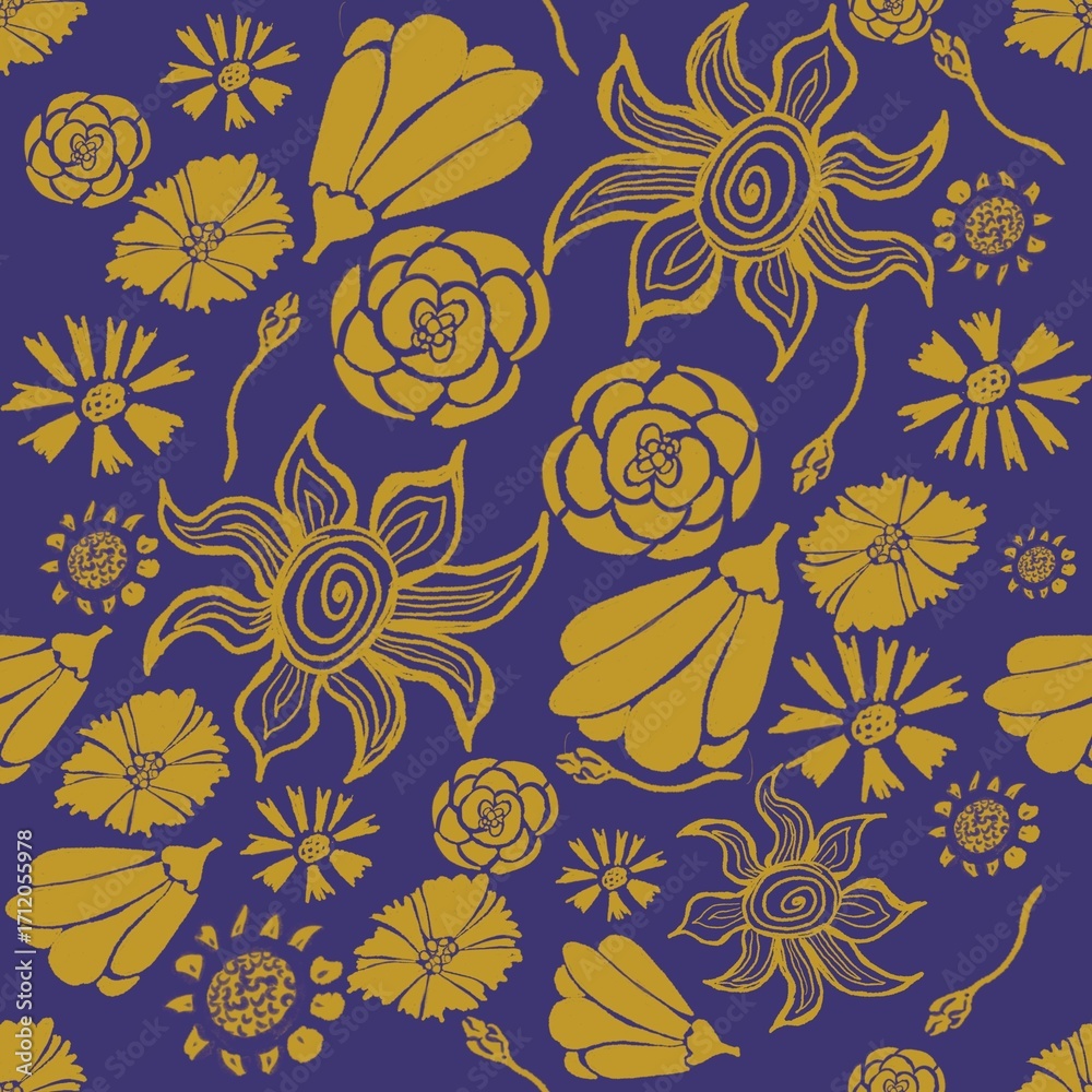 Fototapeta Trendy - Seamles pattern with golden flowers #1712055978