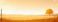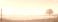 • Malownicza ilustracja przedstawiająca samotne drzewo na rozległym złotym polu pod rozświetlonym pomarańczowym niebem podczas pięknego zachodu słońca.