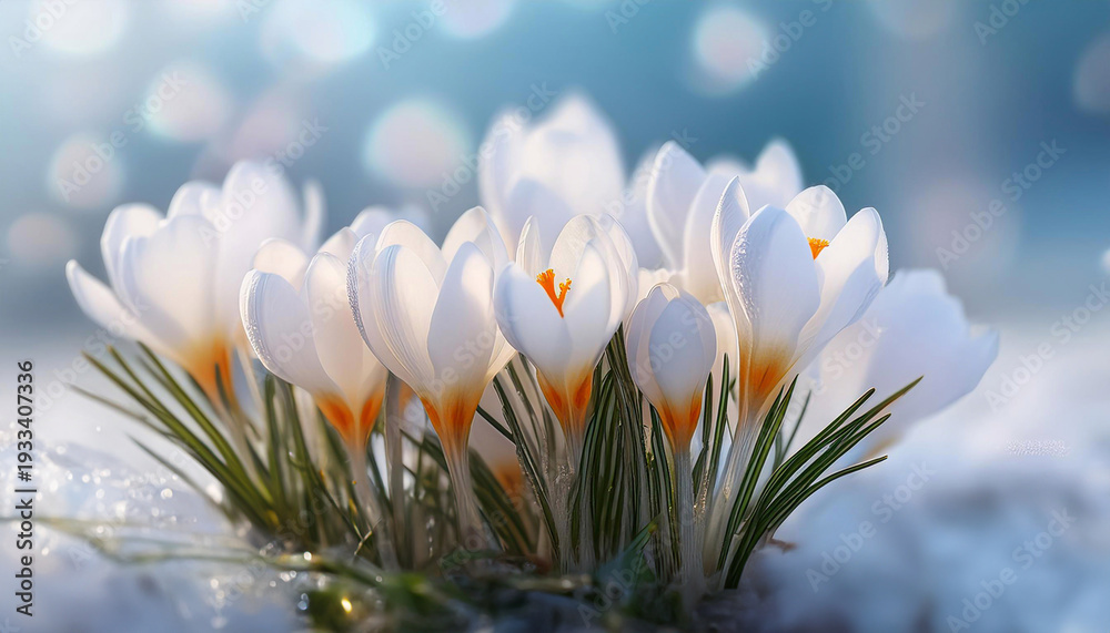 Fototapeta Trendy - Wiosna, białe krokusy tapeta na pulpit #1933407336