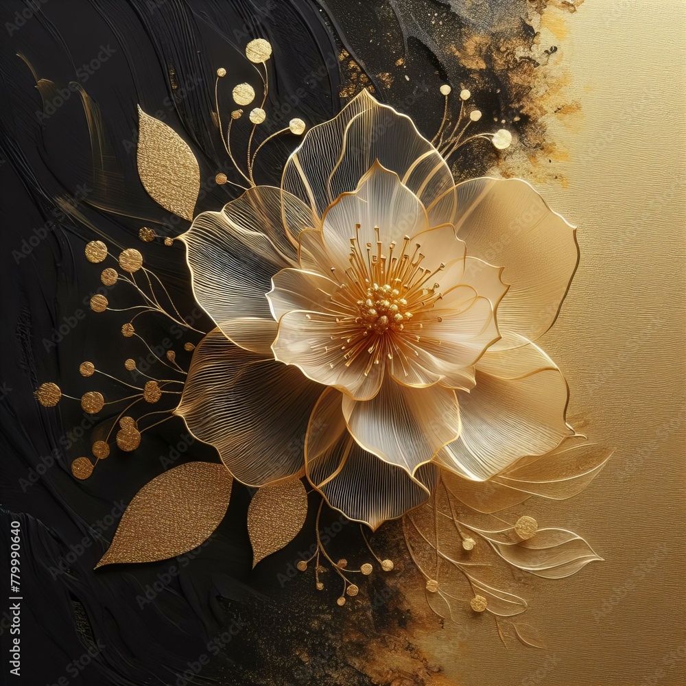 Fototapeta Trendy - Piękny abstrakcyjny kwiat, złoty na czarnym tle, generative ai #779990640