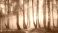 • Brzozowy lasek na wiosnę o wschodzie słońca we mgle, tapeta generative ai