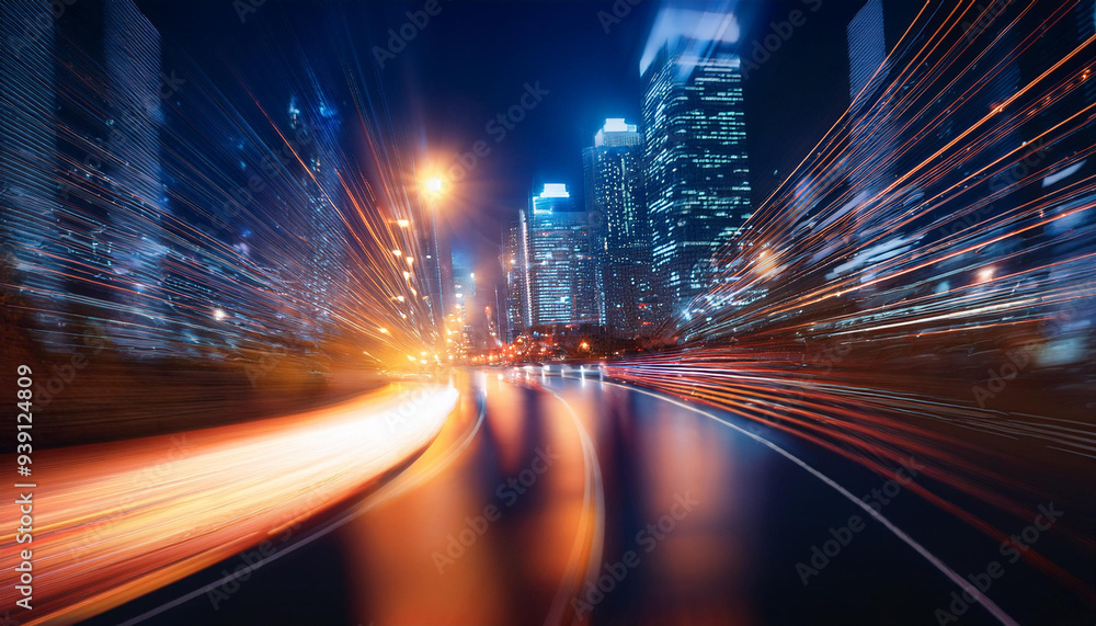 Fototapeta Trendy - Ruch uliczny w mieście nocą, rozmyte swiatła samochodów, klimatyczna tapeta generative ai #939124809