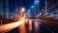 • Ruch uliczny w mieście nocą, rozmyte swiatła samochodów, klimatyczna tapeta generative ai