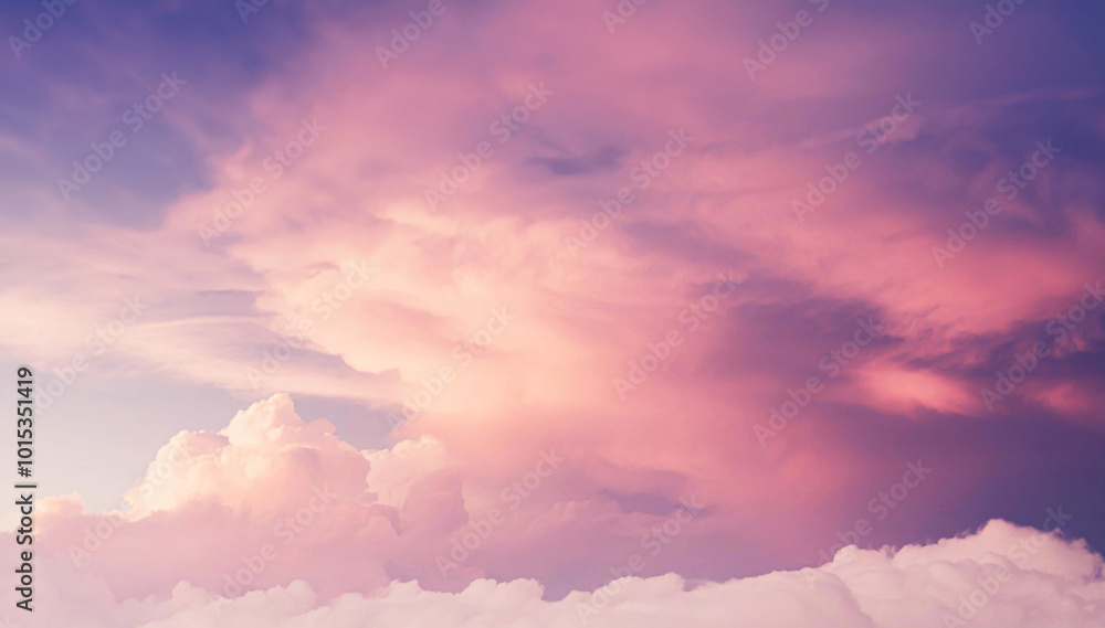 Fototapety Trendy - Dramatyczne niebo, różowe i fioletowe chmury #1015351419