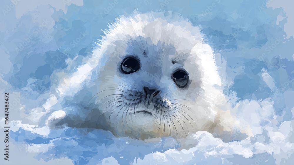 • AKWARELOWE MALOWANIE MAŁEGO BIAŁEGO FOKA NA ŚNIEGU