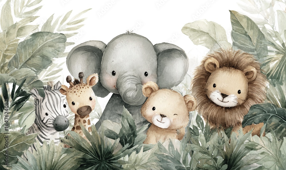 Fototapety Trendy - AKWARELOWE ILUSTRACJE UROCZYCH ZWIERZĄT Z SAWANNY #1647624083