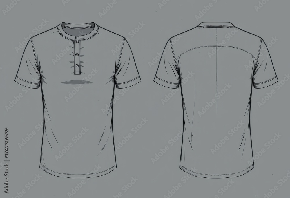 Fototapety Trendy - Plantilla de dibujo técnico de camisa henley de manga corta para hombre, boceto plano vectorial... #1742316539