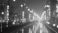 • Mesmerizing pink and purple bokeh over a silhouetted city skyline.