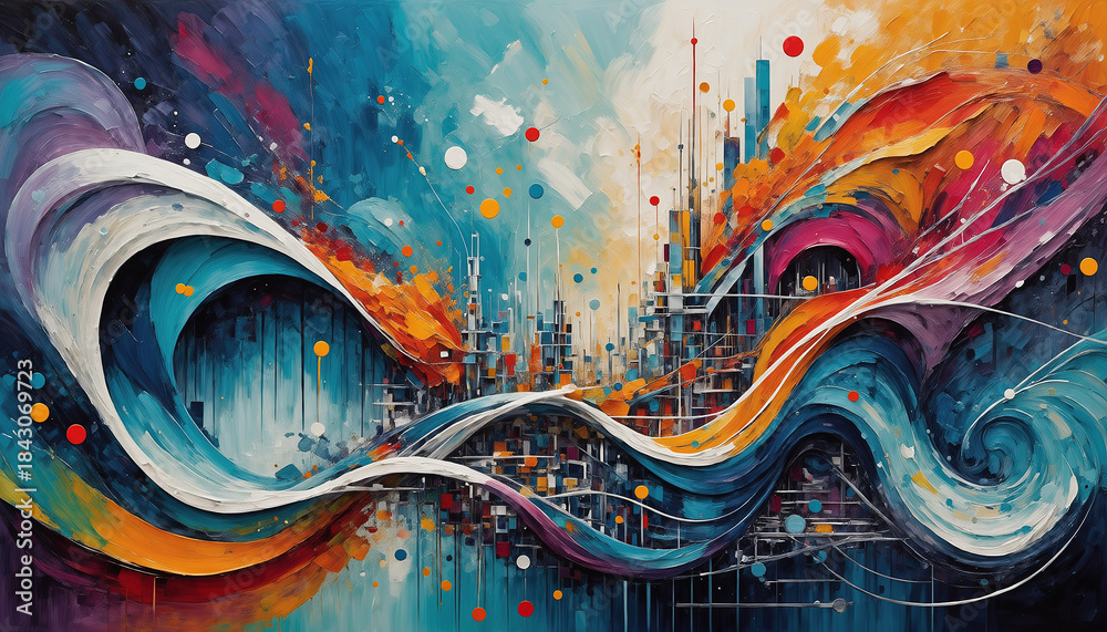 Fototapety Trendy - Żywe kolory zarysowane przez maźnięcia pędzla z farbą. Tapeta ukazująca taniec kolorów. #1843069723