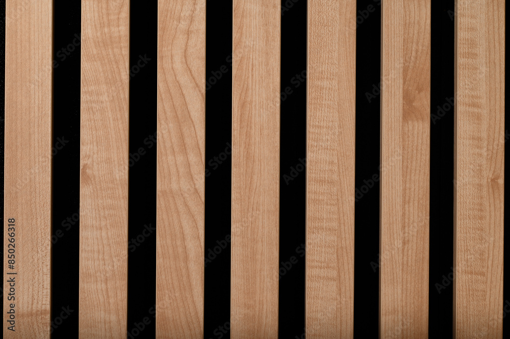 Fototapety Drewno - Drewniana boazeria - lamele na ścianie, struktura pionowych desek makro #850266318