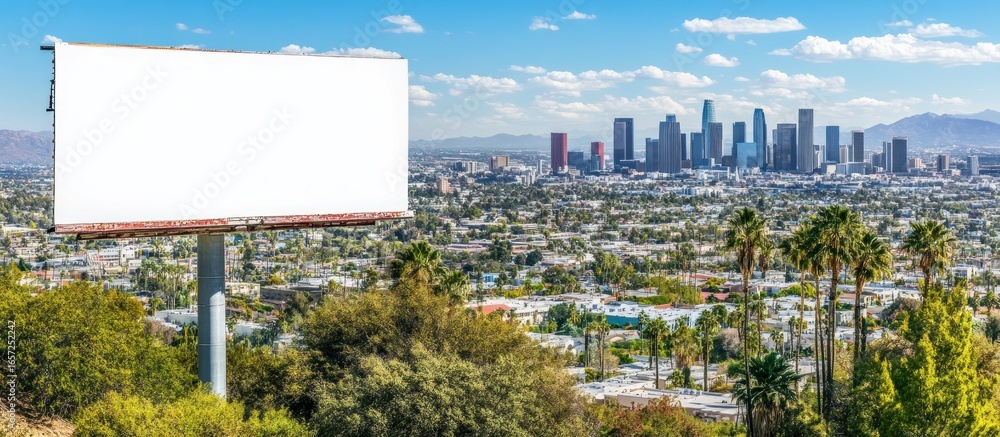 Fototapeta do korytarza - Blank billboard overlooking Los Angeles cityscape #1657252242