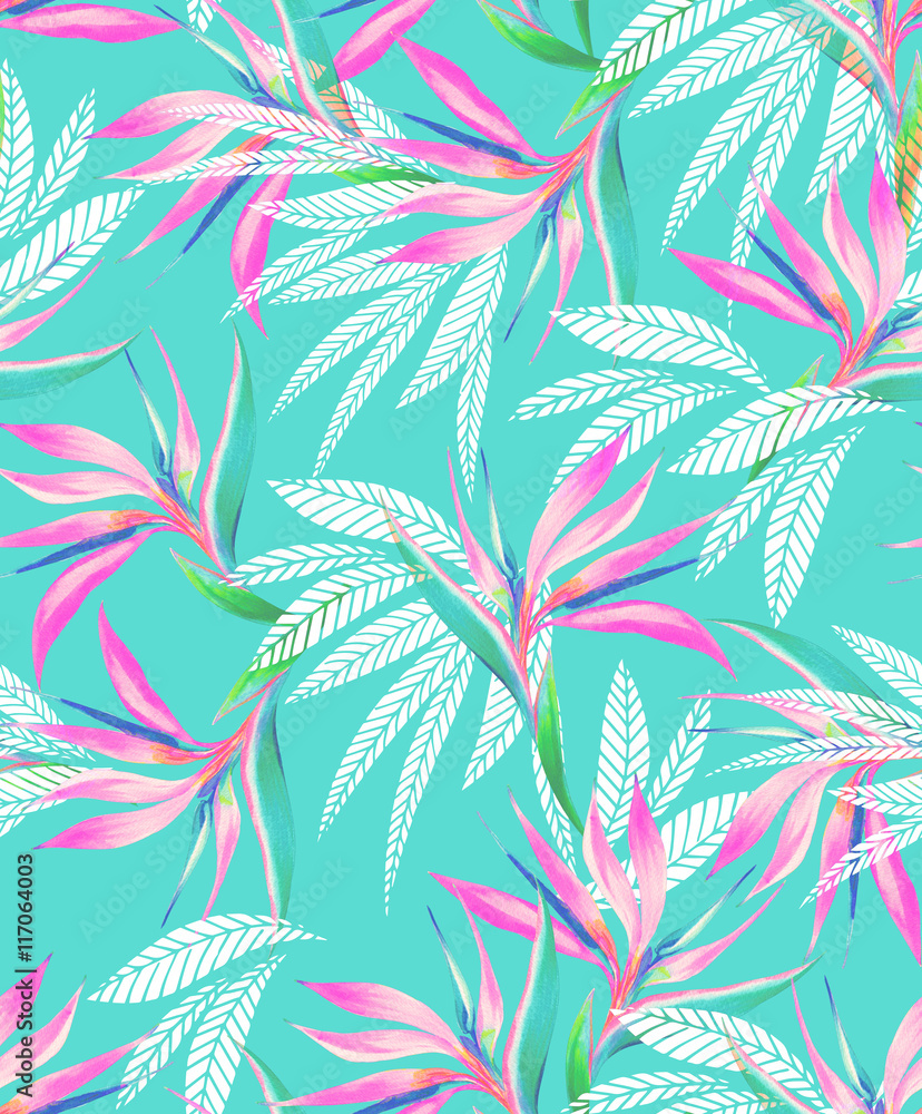 Fototapeta do Pokoju - Akwarela ptak rajski tropikalny wzór. #117064003
