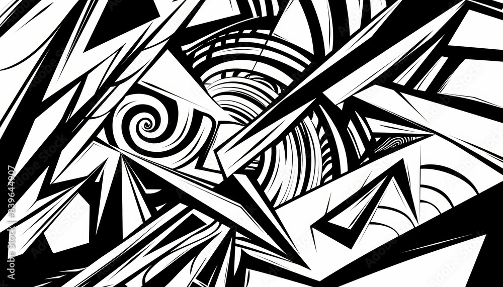 • Diverse monochrome patterns in abstract design with various black and white elements