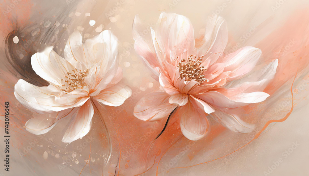 kwiaty - Piękne kwiaty w kolorze brzoskwiniowym, dekoracja tapeta generative ai #748076648