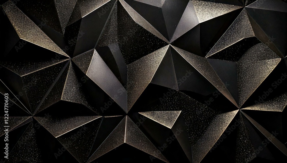 wzory 3D - Abstrakcyjne, czarne tło 3D z trójkątnymi figurami geometrycznymi #1224770603
