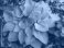 • Hosta (funkia) bylina o ozdobnych liściach, odmiana Abiqua Blue Edger pokryta kroplami wody