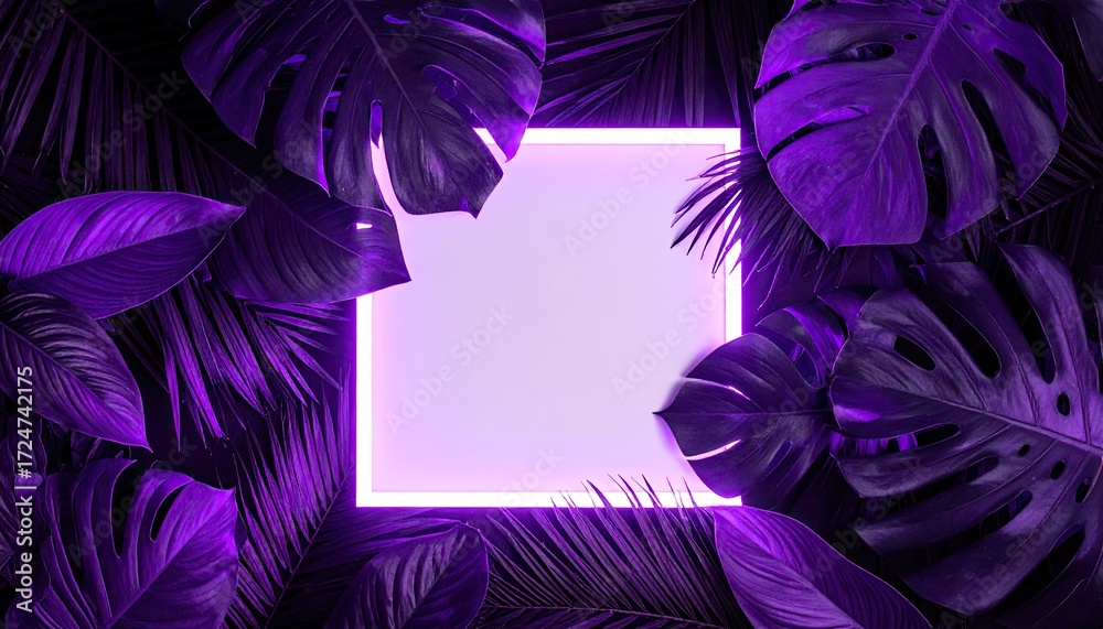 Chabrowy - Purple tropical leaves frame empty square #1724742175