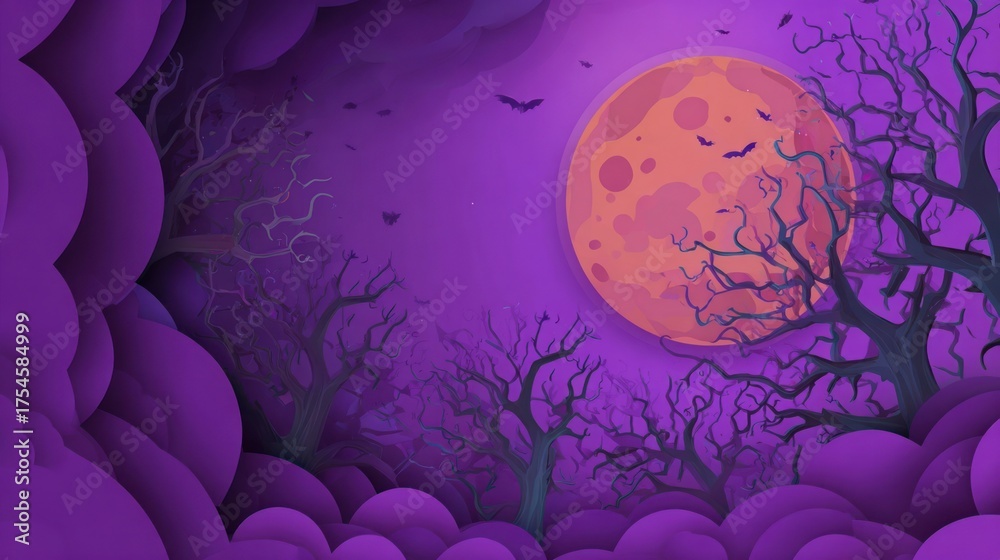 Chabrowy - Halloween sale background with big violet moon #1754584999