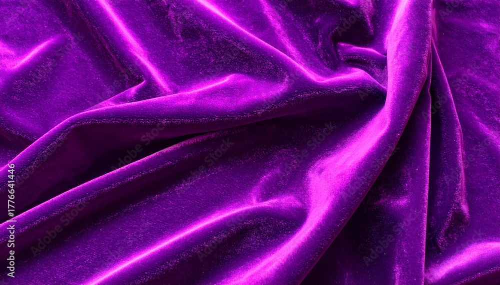 • Close-up of deep purple velvet fabric with gentle folds, highlighted by light