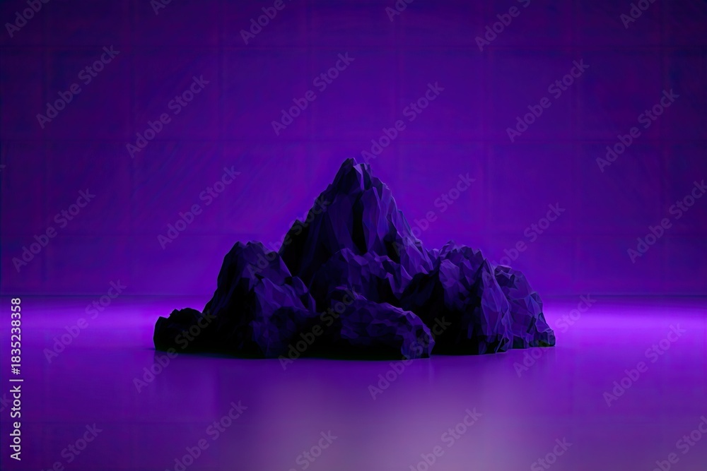 Chabrowy - Jagged rock formation sits on reflective surface with purple backdrop. #1835238358
