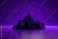 • Jagged rock formation sits on reflective surface with purple backdrop.