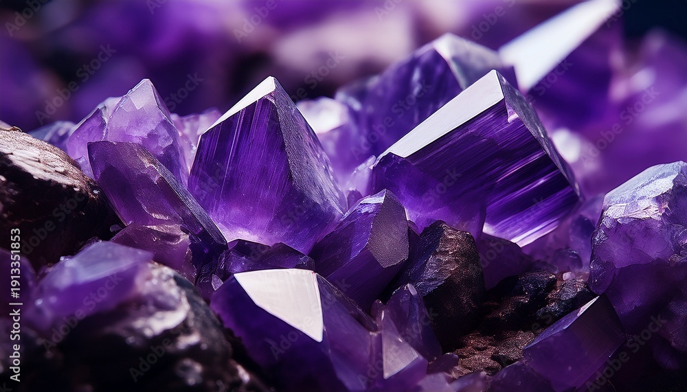 Chabrowy - Close Up Photograph Highlights Faceted Surfaces Of Deep Purple Mineral Formation Against A Soft... #1913351853